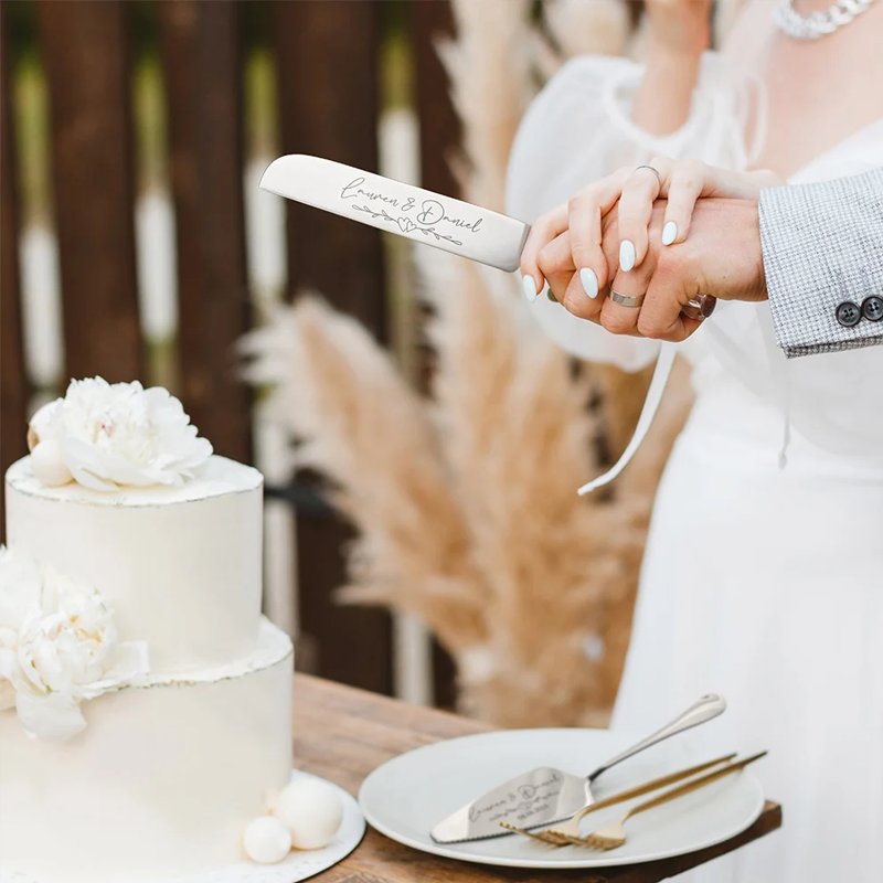 Custom Engraved Wedding Cake Cutting Serving Set Engraved Cake Knife and Server Set Knife & Forks Gift for Bridal Shower