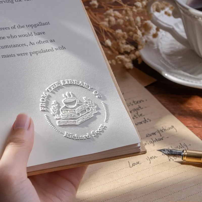 Custom Metal Book Embosser for Book Lover Gifts Handheld Personalized Embosser Book Stamp Library Stamp Gift for Readers, Teachers & Home Libraries
