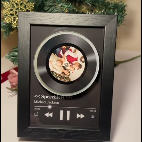 Custom Whole Song Photo Frame with Music Christmas Gifts Personalized Rotating Vinyl Night Light Music Player (Can Play Whole Song)