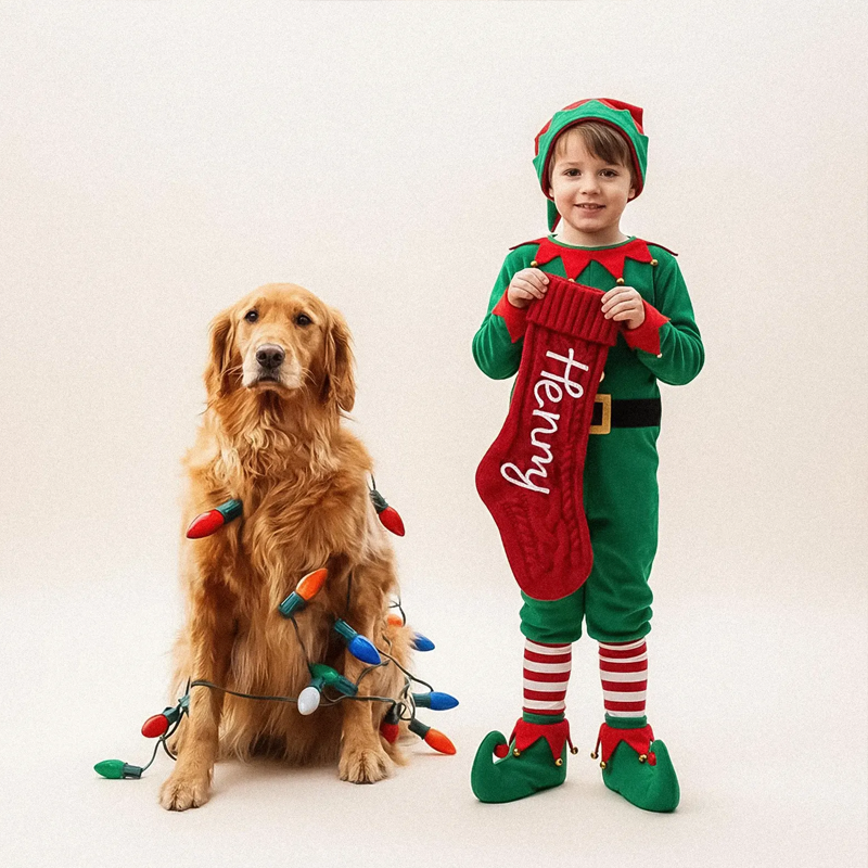 Handmade Personalized Name Hand Embroidered Christmas Stockings Custom Knit Socks Ornament with Name Family Xmas Gifts