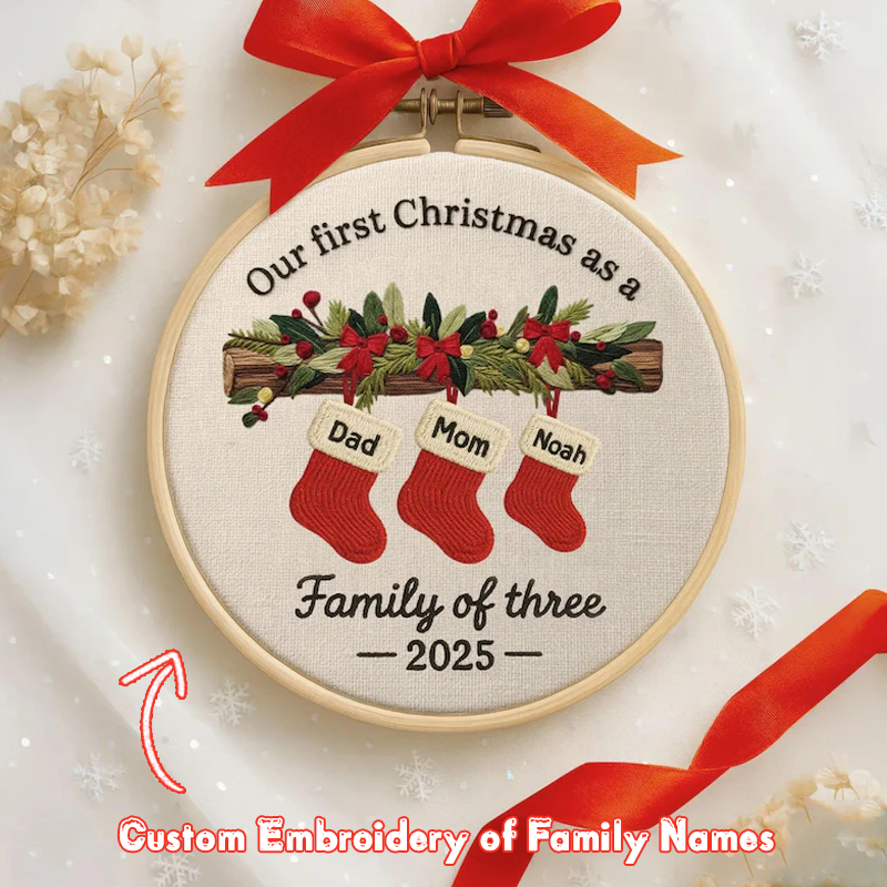 Personalized Family Names Embroidered Ornament Custom Our Family Ornament Christmas Holiday Keepsake First Christmas Embroidery Hoop Art