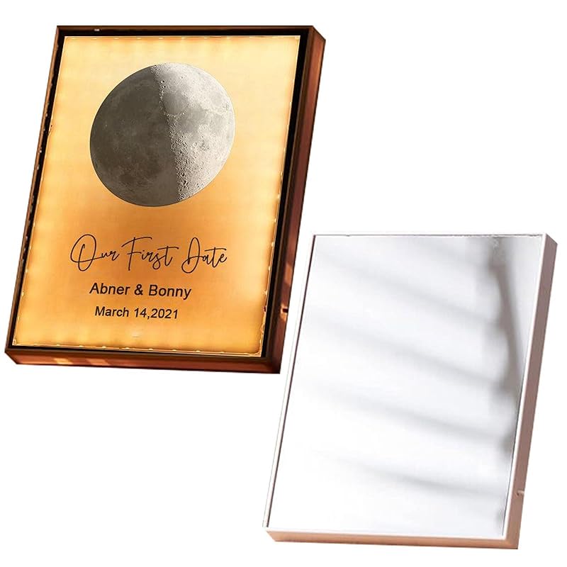 Personalized Moon Phase Mirror Custom Led Mirror Lamp Frame Moon of the Date of your Birthday with Text Engraved