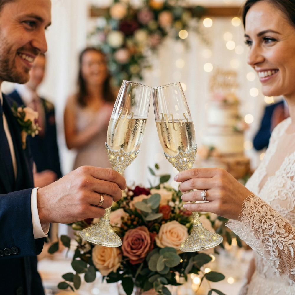 Personalized Wedding Champagne Flutes Custom Champagne Flutes Handmade Wedding Gift for Couple