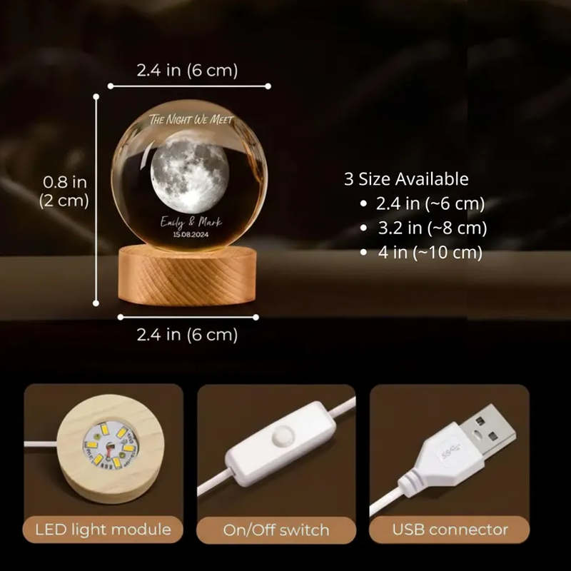 The Day You Became Our Mom Custom Moon Phase Crystal Ball Night Light Personalized Kids Name and Date Lamp Mother's Day Gift